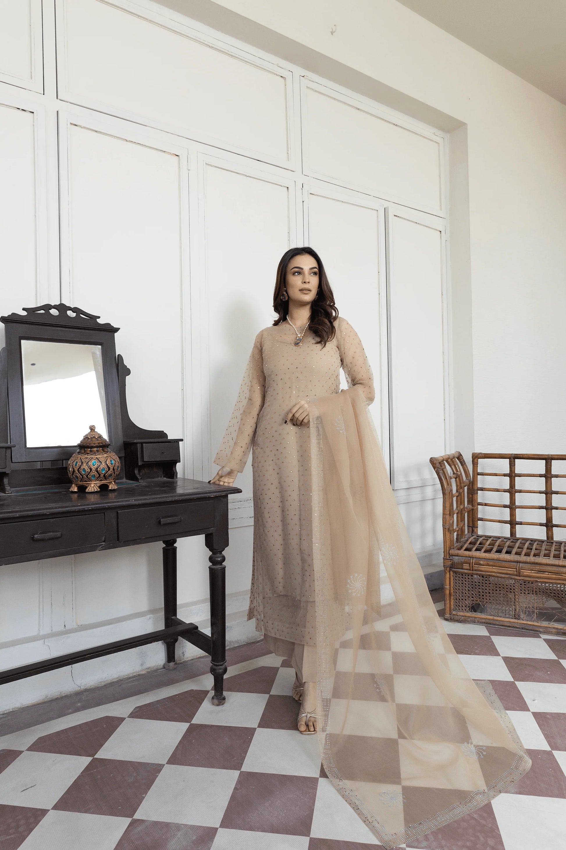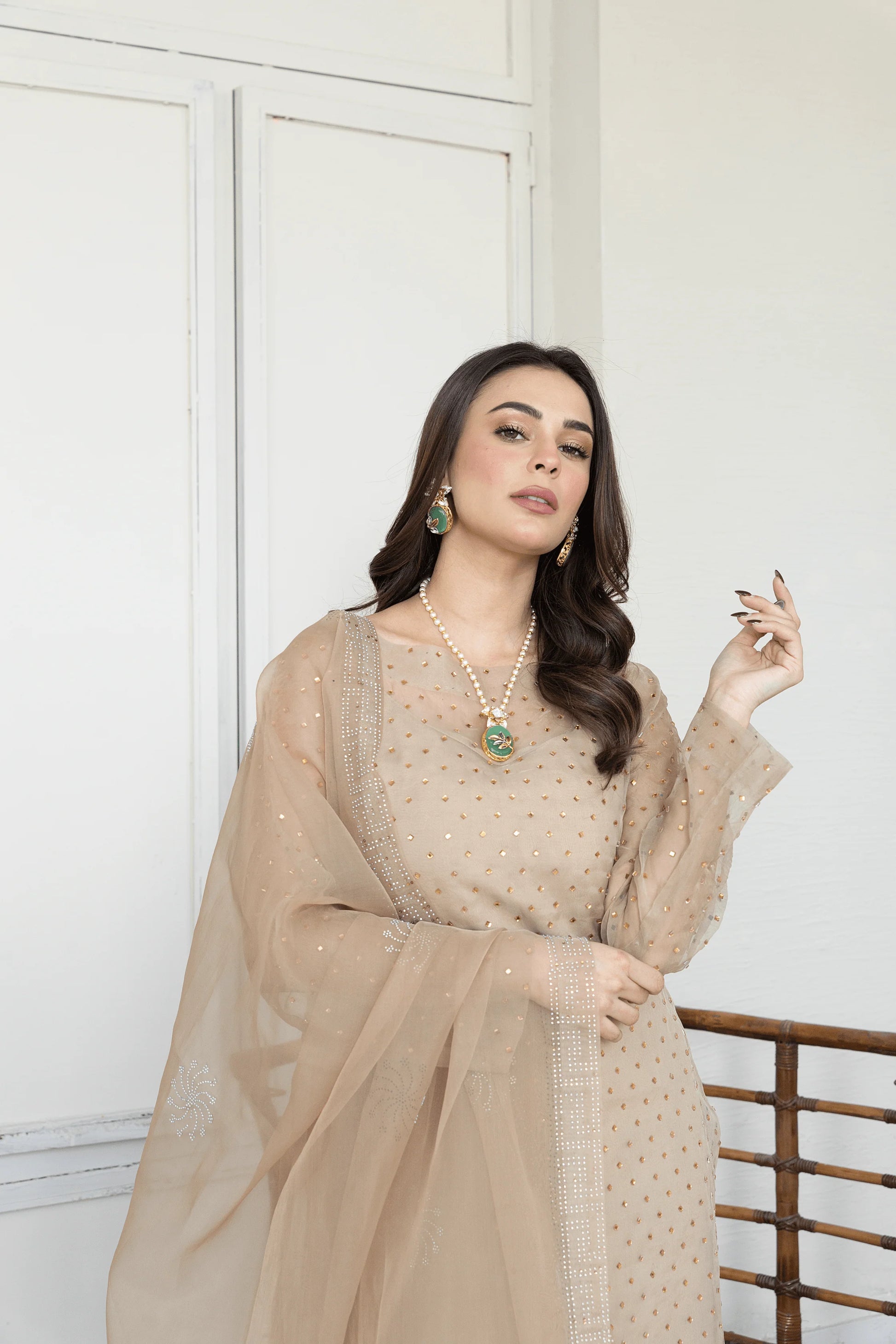 Description: Behold the Mocha Luxe Rhinestone Dress adorned with meticulously hand-sewn crystals, a symphony of sophistication and glamour. Color: Mouse Fabric Details: 4 Pc unstich Shirt:...