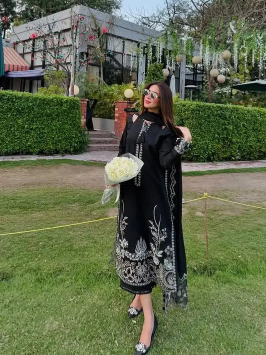 Elegant 3-Piece | Deep Black | Premium Embroidered Outfit
